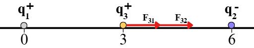 F₃ = 9·10⁹·4·10⁻⁶·8·10⁻⁶/(3)² + 9·10⁹·4·10⁻⁶·12·10⁻⁶/(3)²