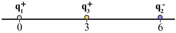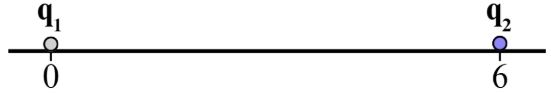 q₁ = 8·10⁻⁶c, q₂ = -12·10⁻⁶c, x₁ = 0, x₂ = 6m