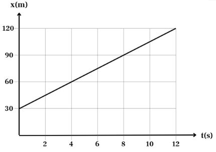 גוף נע ימינה (הכיוון החיובי) בקו ישר. הגוף יוצא מנקודה X₀ = 20m ונע במהירות של 15m/s.