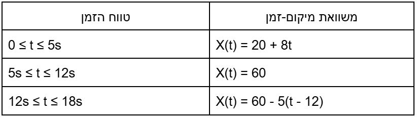 א. קבע עבור כל חלק את סגנון התנועה: מנוחה, מהירות קבועה ימינה, מהירות קבועה שמאלה.