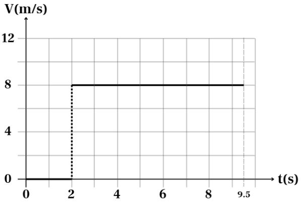 דני נוהג במשאית הובלה לאורך כביש ישר. הוא יוצא לדרך בשעת הבוקר המוקדמת כדי לספק סחורה למספר חנויות. הגרף שלפניך מתאר את המהירות של המשאית של דני כפונקציה של הזמן במהלך 20 השניות הראשונות של הנסיעה.