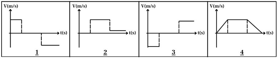 ד. גרף 1, בהתחלה מהירות חיובית, מנוחה ואז מהירות שלילית. ולכן התרשים מתאים, מעל הציר האופקי, על הציר ואז מתחת.