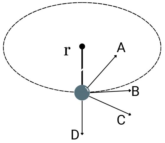 אם משחררים את החוט באופן פתאומי, הגוף ימשיך לנוע בכיוון המשיק למעגל בנקודה שבה הוא שוחרר. הסבר: בציר האנכי שקול הכוחות הוא 0 (mg = N) ובציר הרדיאלי\אופקי כבר לא פועלים כוחות.