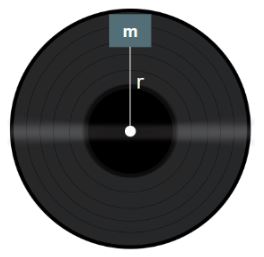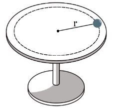 דיסק מסתובב במהירות קבועה של 45 סיבובים לדקה.גוף קטן במסה M מונח על הדיסק במרחק של r = 12cm ממרכזו.