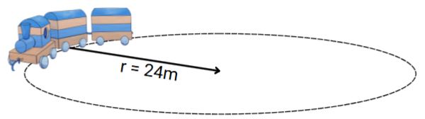 רכבת הרים בפארק שעשועים נעה במסלול מעגלי אופקי ברדיוס r = 24 m. הכוח השקול הפועל על הרכבת הוא F = 7500N. הרכבת משלימה בדיוק 5 סיבובים שלמים תוך 2 דקות.