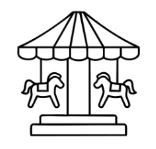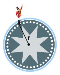 מתקן הסוסים בפארק השעשועים מסתובב במהירות זוויתית ω = 0.1 rad/s. המרחק בין כל סוס למרכז הוא r = 25m. ילד יושב על אחד הסוסים והמתקן מתחיל לנוע.